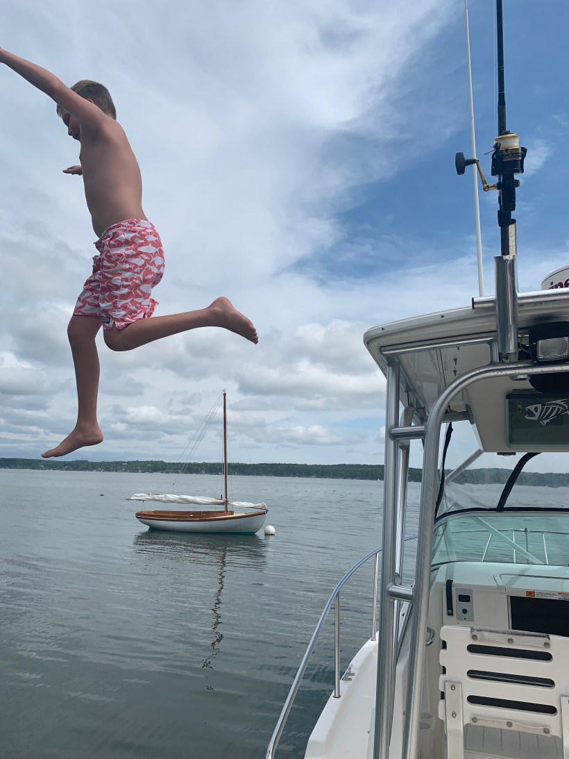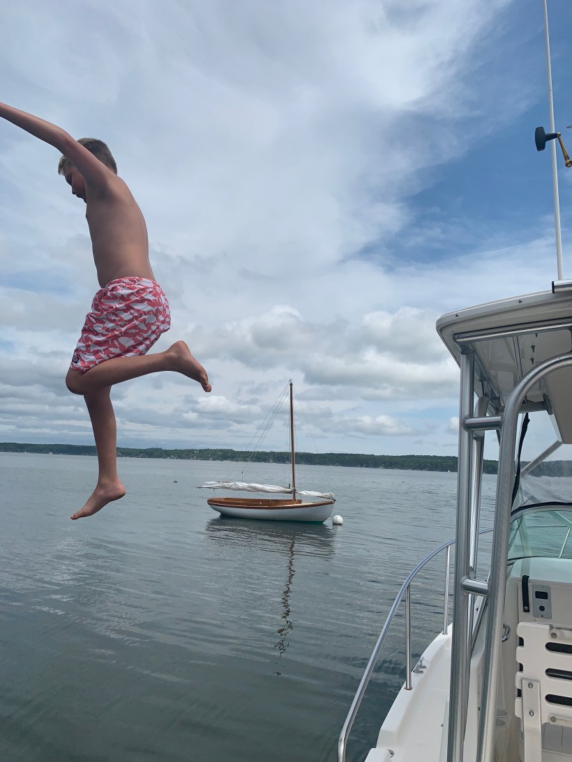 The teenager Jackson jumping off the boat